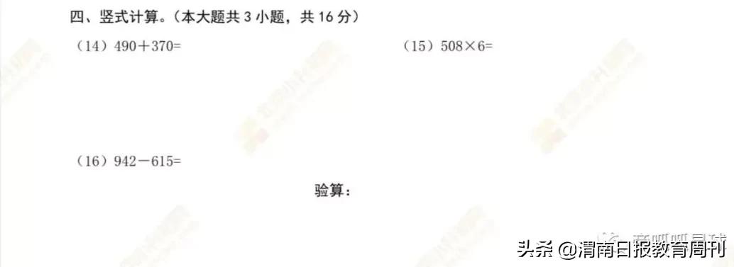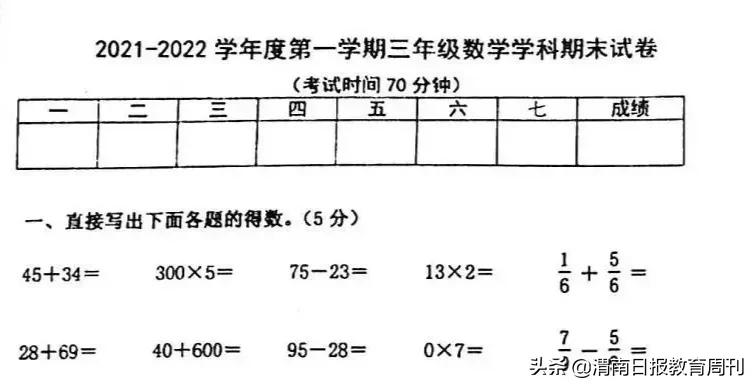 拿三年级的数学试卷来举例。东城区三年级的数学试卷,纯计算题一共就14道,占25分。