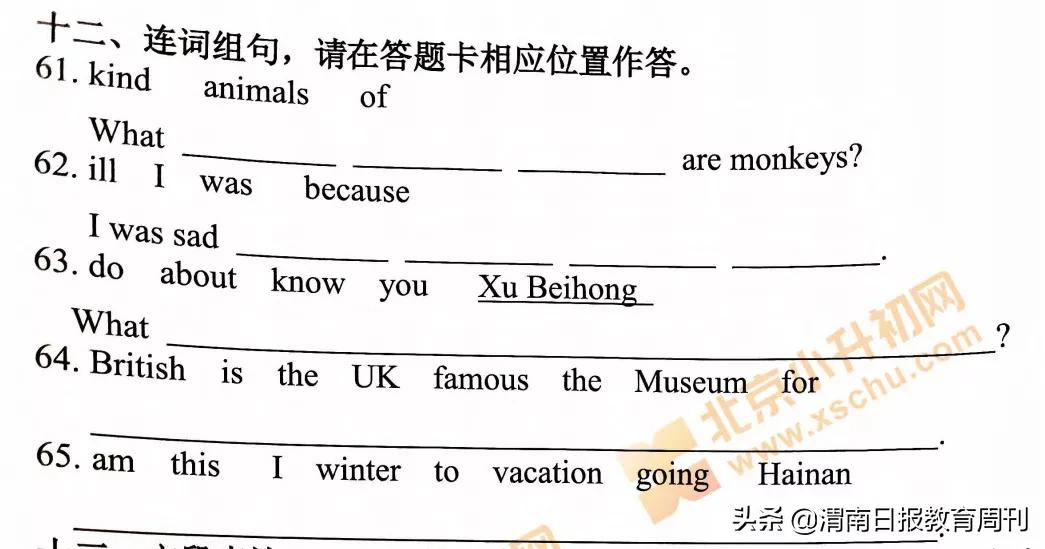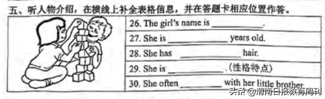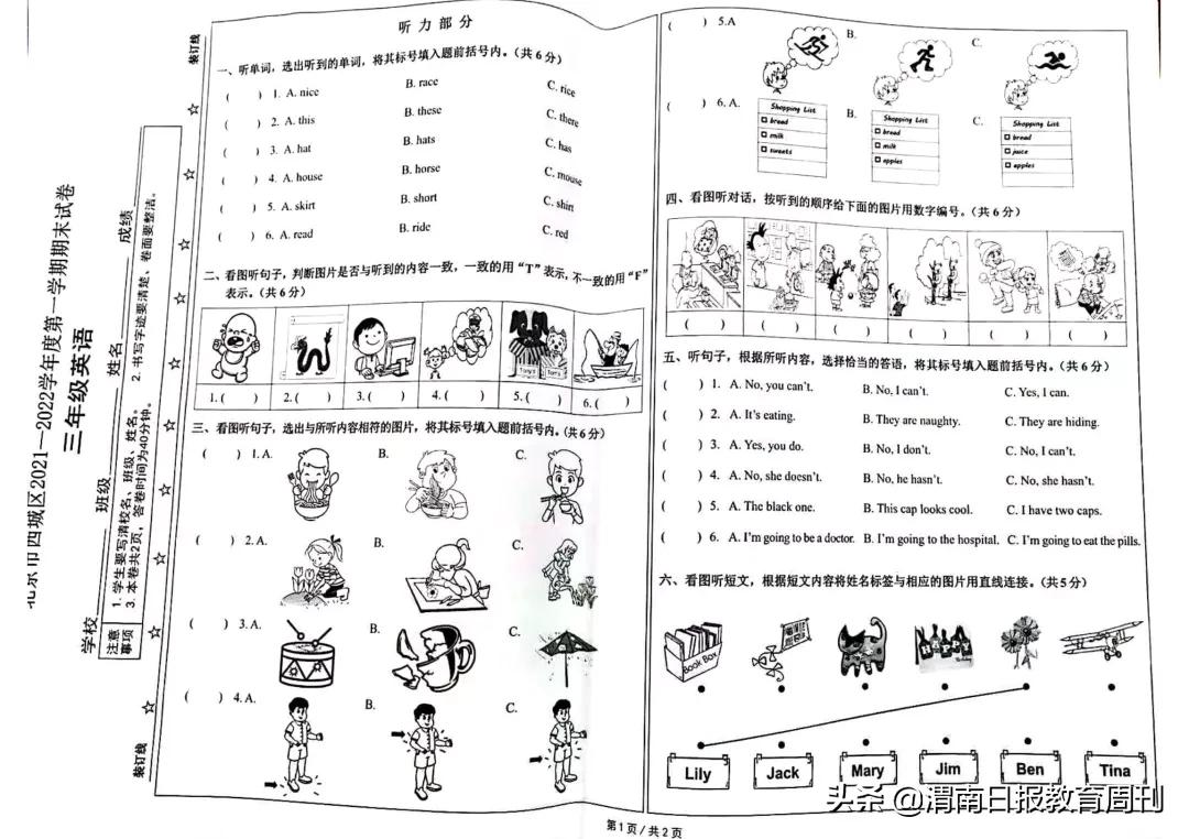 这一份,就是北京西城区三年级英语考试的试卷。